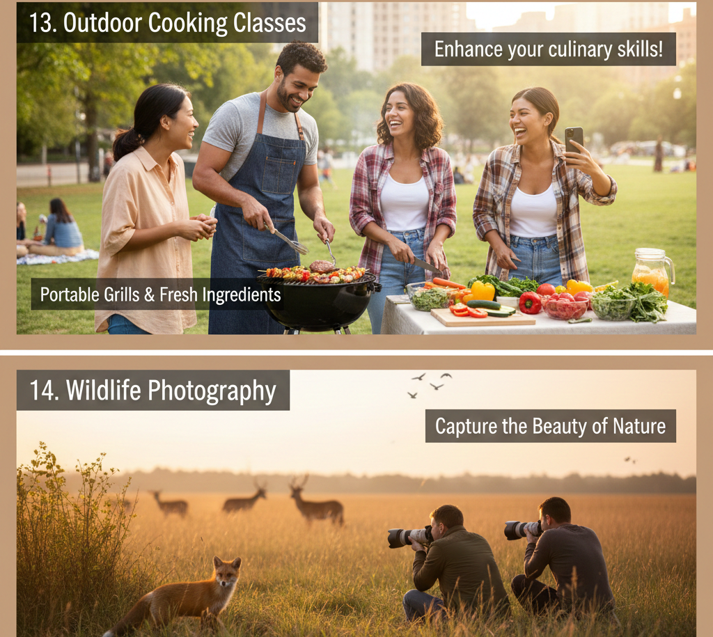 Enhance your culinary skills while enjoying the great outdoors. Gather friends or family for a cooking class in a park, learning to whip up simple meals using portable grills and fresh ingredients.