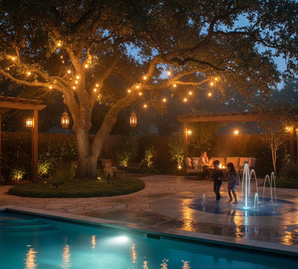 If you have children, include a water play area with small fountains or splash pads as part of your backyard transformation. This fun and refreshing addition can make your backyard transformation even more engaging, keeping them entertained while enjoying the outdoors
