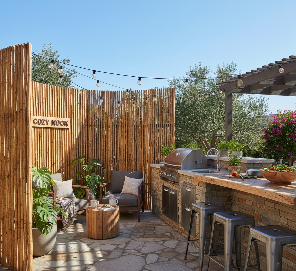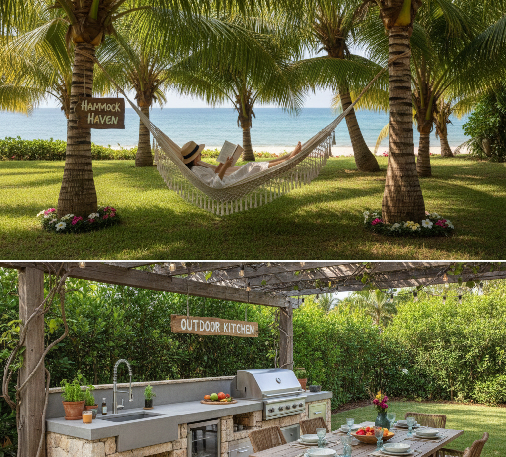 Cooking outdoors expands your entertaining options. Design a functional outdoor kitchen that includes a grill, sink, and counter space. Add a dining area nearby to create the ultimate cooking and dining experience.