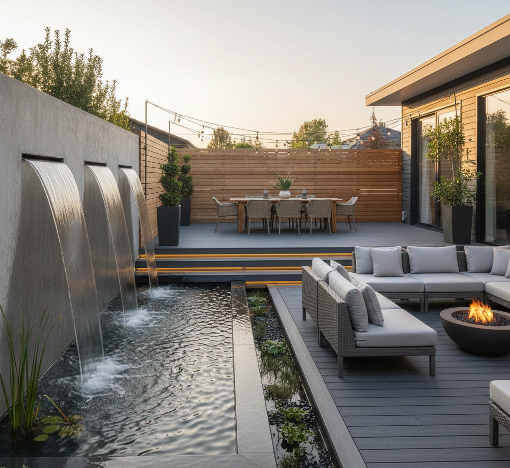 Incorporating a water feature, be it a fountain or a pond, brings serene sounds and a sense of calmness to your backyard. Choose a design that complements your overall aesthetic, whether it’s contemporary or rustic.