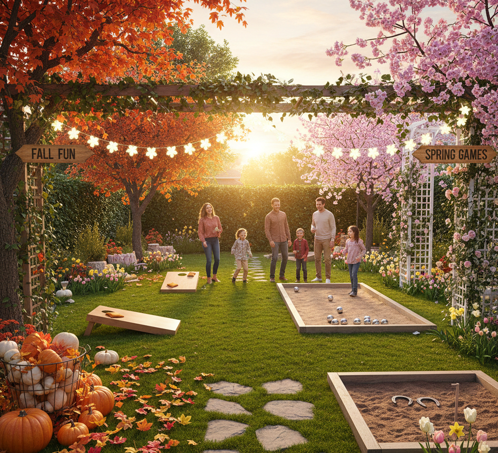 Incorporate classic outdoor games like cornhole, bocce ball, or horseshoe pits to enhance your backyard transformation. These additions make your backyard transformation more fun and entertaining, encouraging play and sparking friendly competition among family and friends