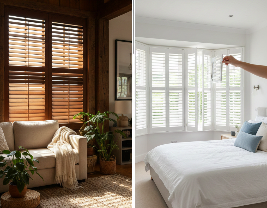 If you’re looking for a shutter that combines functionality with style, plantation shutters are the way to go. Their adjustable louvers allow you to control privacy and light levels effectively, making them perfect for both living rooms and bedrooms.