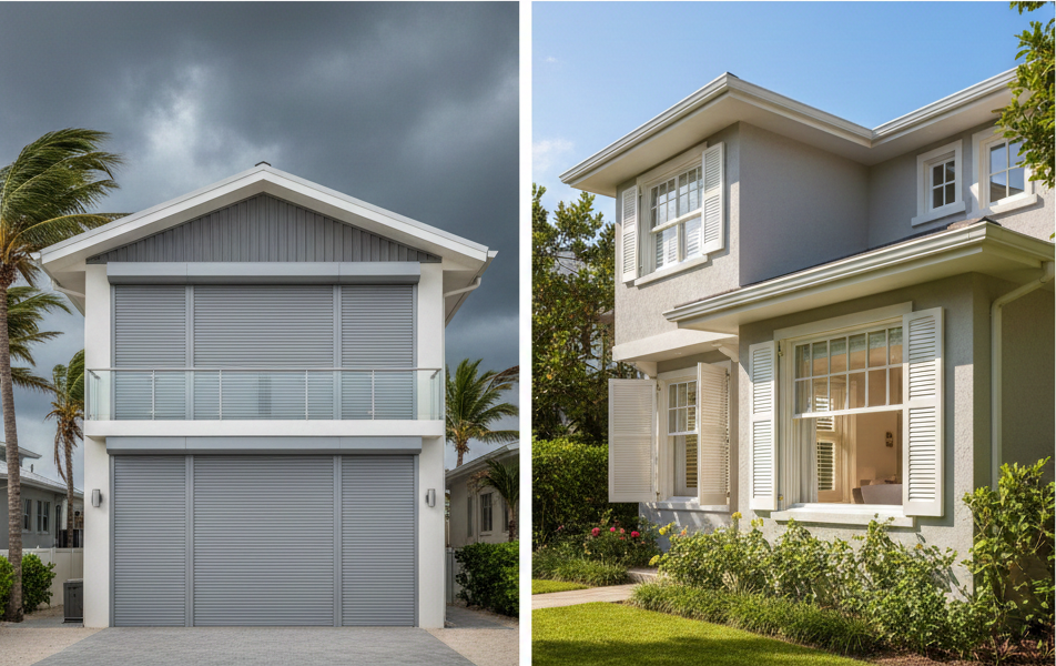 Rolling shutters offer security and convenience. Perfect for homes in hurricane-prone areas, they provide a robust defense against high winds while allowing you to easily control light and ventilation.