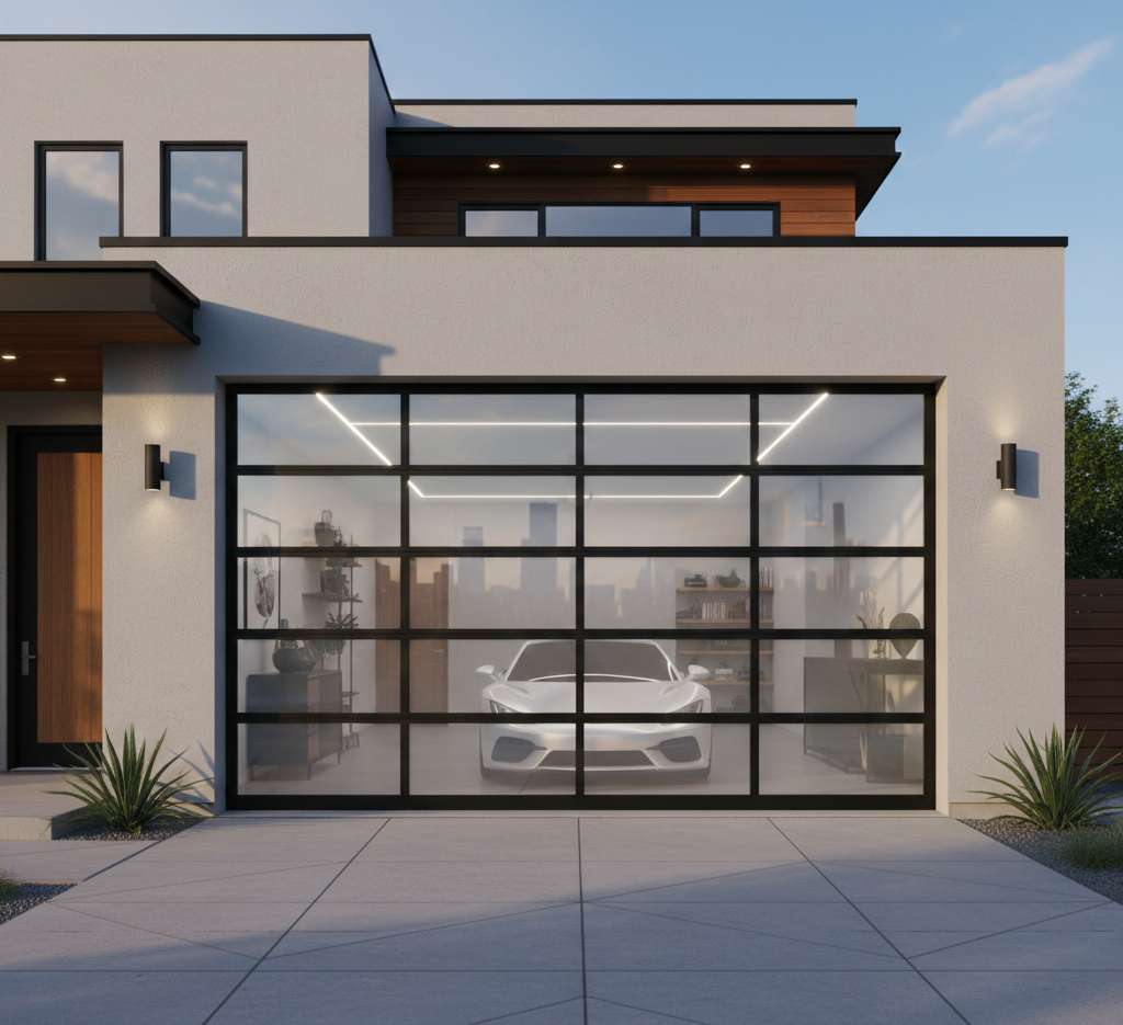 For a sleek, modern look, consider full-glass garage door styles. They allow natural light to flood into your garage while providing a contemporary edge. Available in a variety of frame materials, including aluminum and vinyl, these garage door styles create a striking facade that showcases your home’s interior. Ideal for urban settings, they provide the perfect balance of style and functionality.