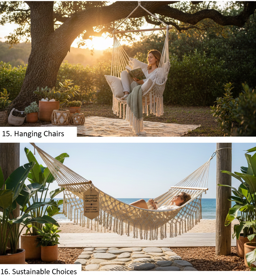 A woven hammock showcases craftsmanship and adds an artisanal touch. Look for designs with intricate patterns that speak to the bohemian aesthetic while ensuring durability and comfort.