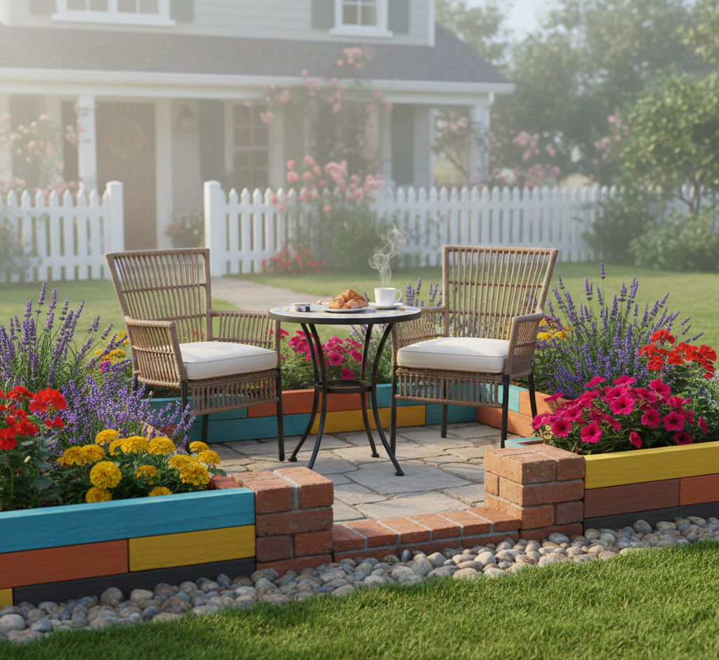 Incorporate colorful borders with painted wood, bricks, or stones to define different sections of your yard while adding a pop of color.