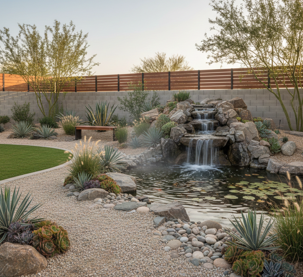 Water features like ponds or small waterfalls bring tranquility to your yard. The soothing sound of running water can enhance the overall ambiance.