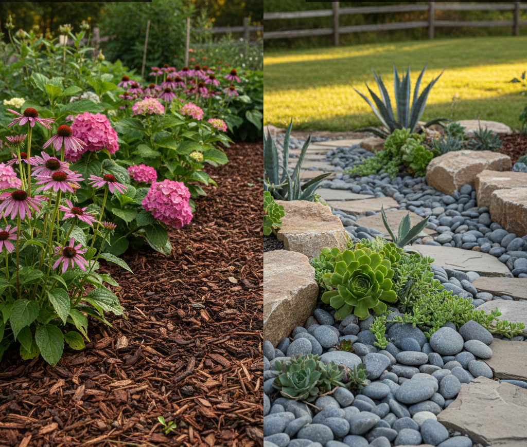 Gravel beds can be a low-maintenance option, ideal for pathways or as a decorative element, providing contrast to green plants.