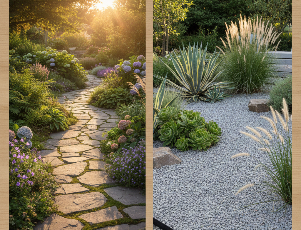 Gravel can form a stylish, low-maintenance garden. Combine it with hardy plants like succulents and ornamental grasses for a chic look.