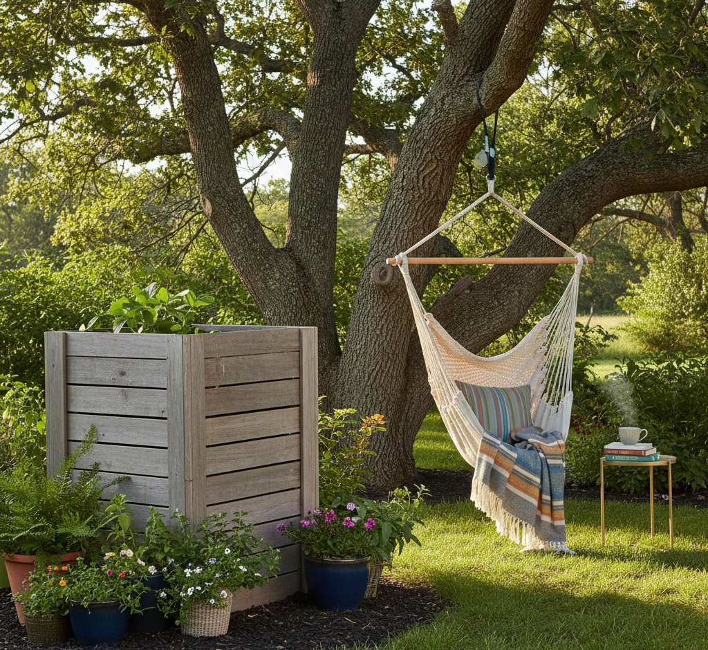 Consider placing a swing or hammock under a tree. It’s a perfect spot for relaxation and adds charm to your yard.