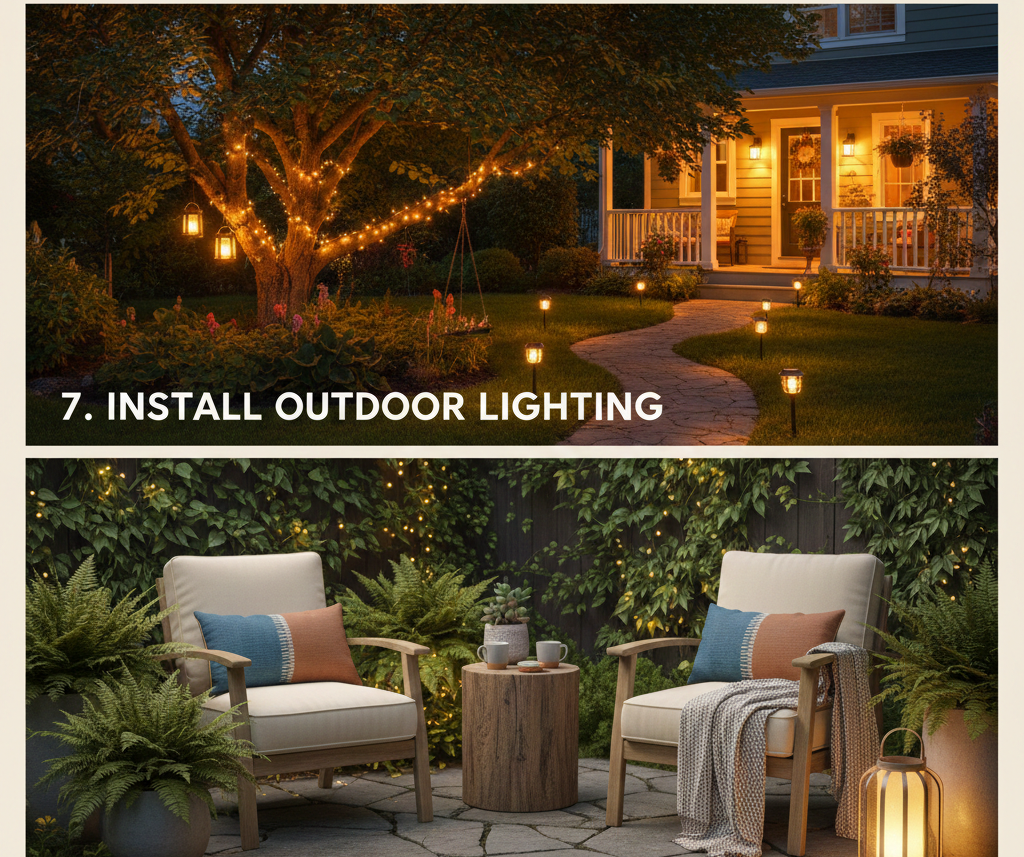 Outdoor lighting can transform your yard from ordinary to extraordinary at night. Solar-powered lights along pathways, in trees, or on the porch create a warm and inviting atmosphere.