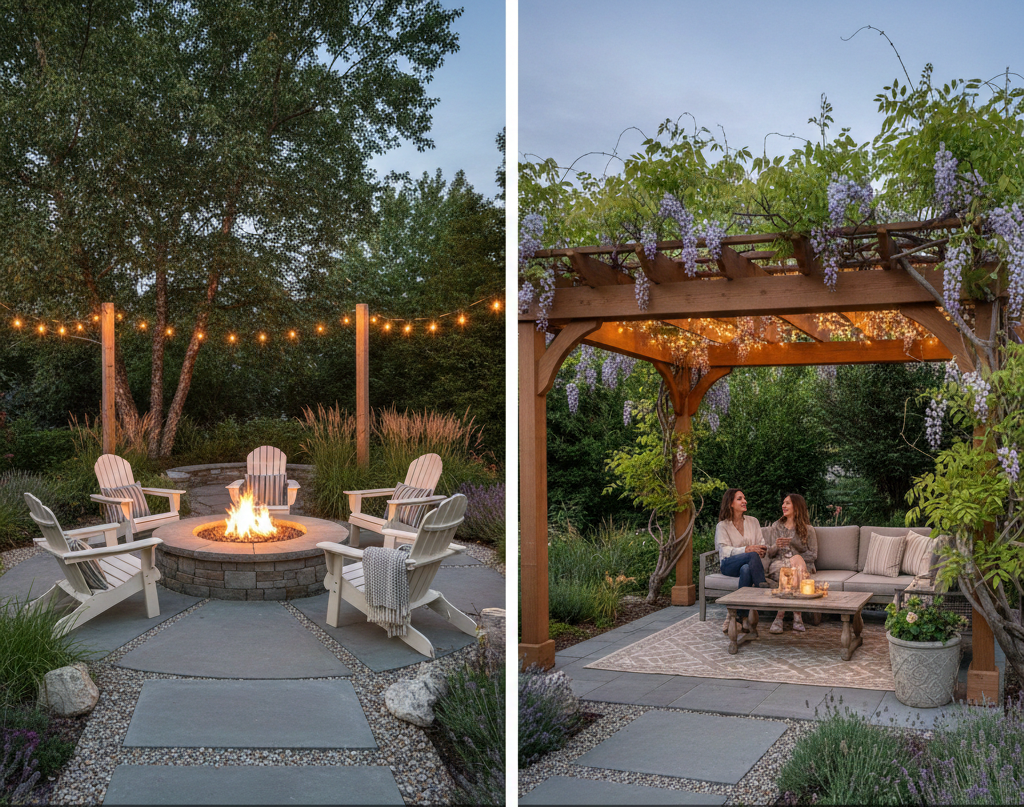 If space allows, a fire pit can be a fantastic gathering spot. Choose a design that complements your home and surrounds it with seating and lights for evening enjoyment.