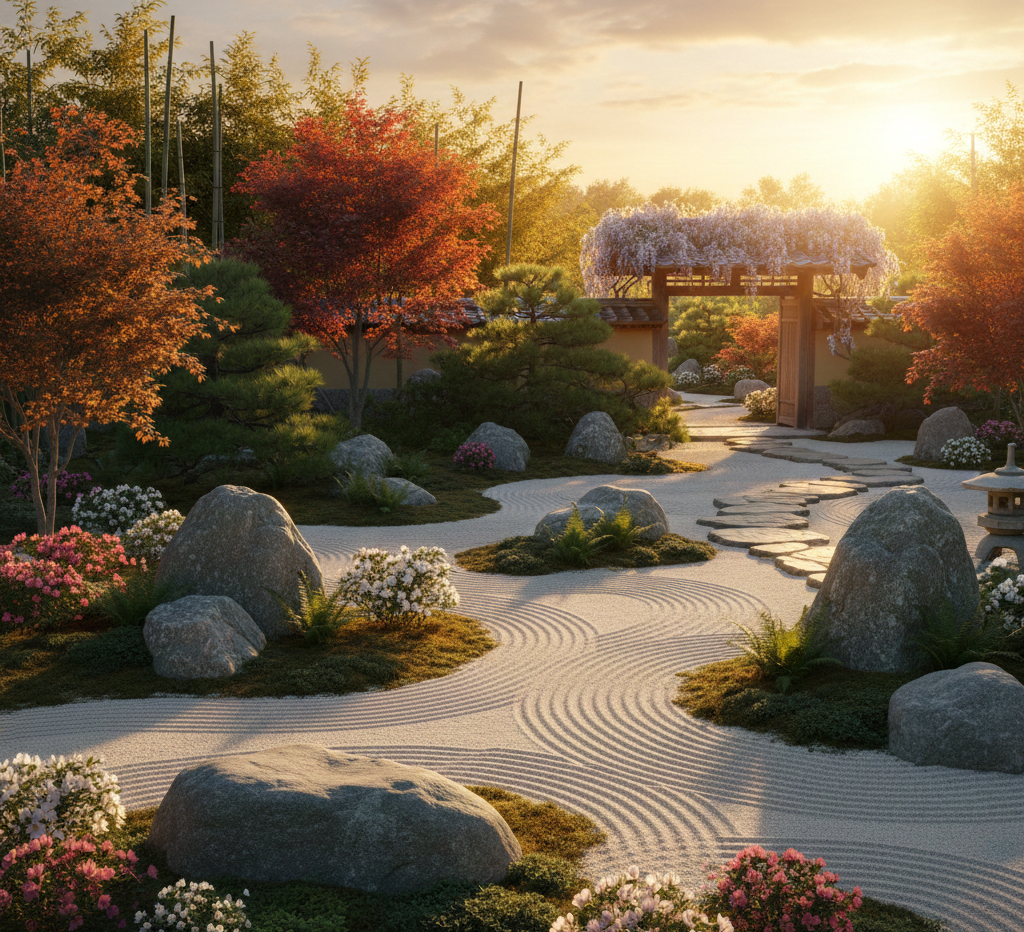 A Zen garden promotes tranquility. Design with sand, stones, and simple plantings to create a calming space.