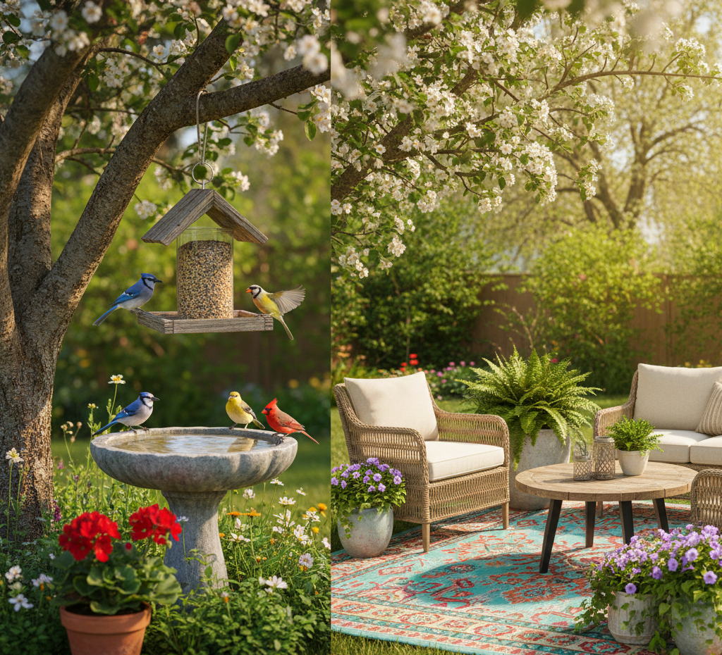 Adding bird feeders and bird baths can make your yard a lively haven for wildlife—bringing both activity and sound to your outdoor space.