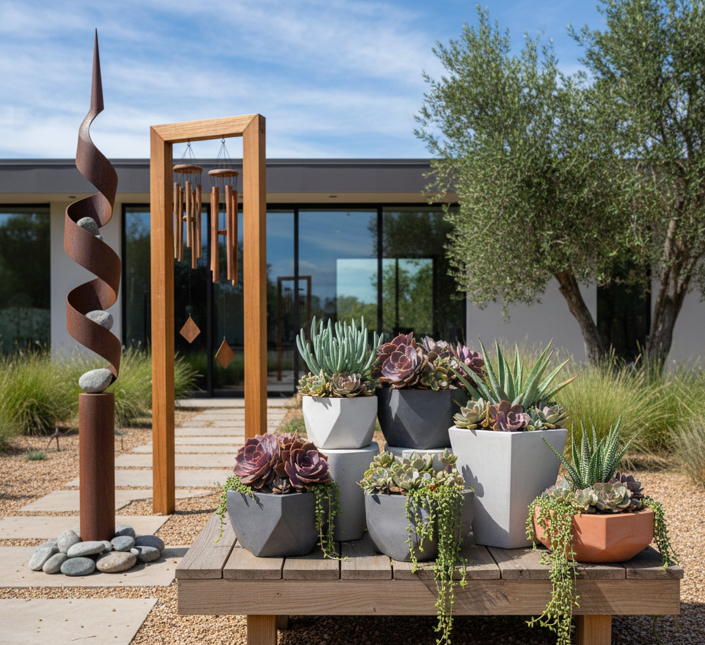 Succulents are low-maintenance and come in various shapes and colors, making them perfect for modern front yards. Arrange them in creative containers for an eye-catching display.