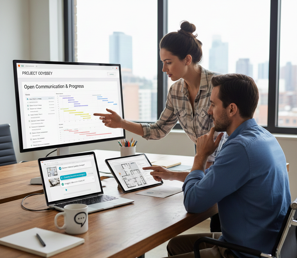 Communicate clearly from the beginning. Use visual aids, provide ideas, and maintain regular feedback sessions throughout the project.