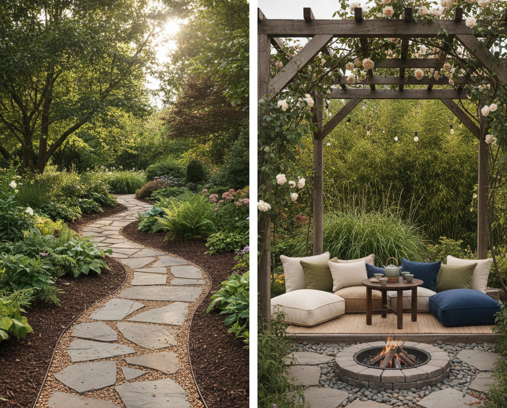 Define pathways using materials like stone, gravel, or mulch to guide visitors through your garden. Natural pathways help in organizing space while enhancing the aesthetic appeal.
