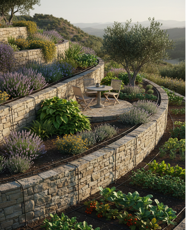 If your garden is on a slope, consider terracing. It not only prevents erosion but creates beautiful, multi-leveled spaces for planting and enjoyment.