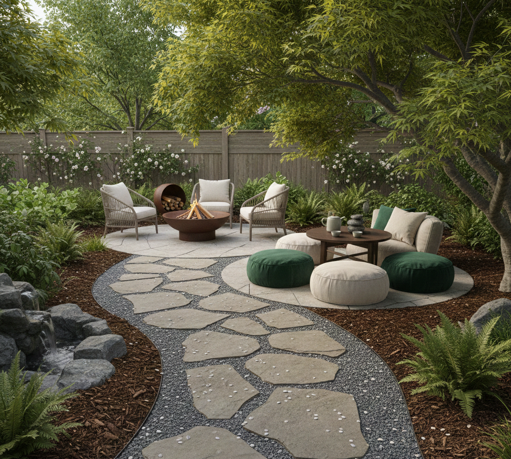 Designate a specific area dedicated to meditation or relaxation. Use soft cushions, a small table for tea, or a fire pit to create a cozy nook.