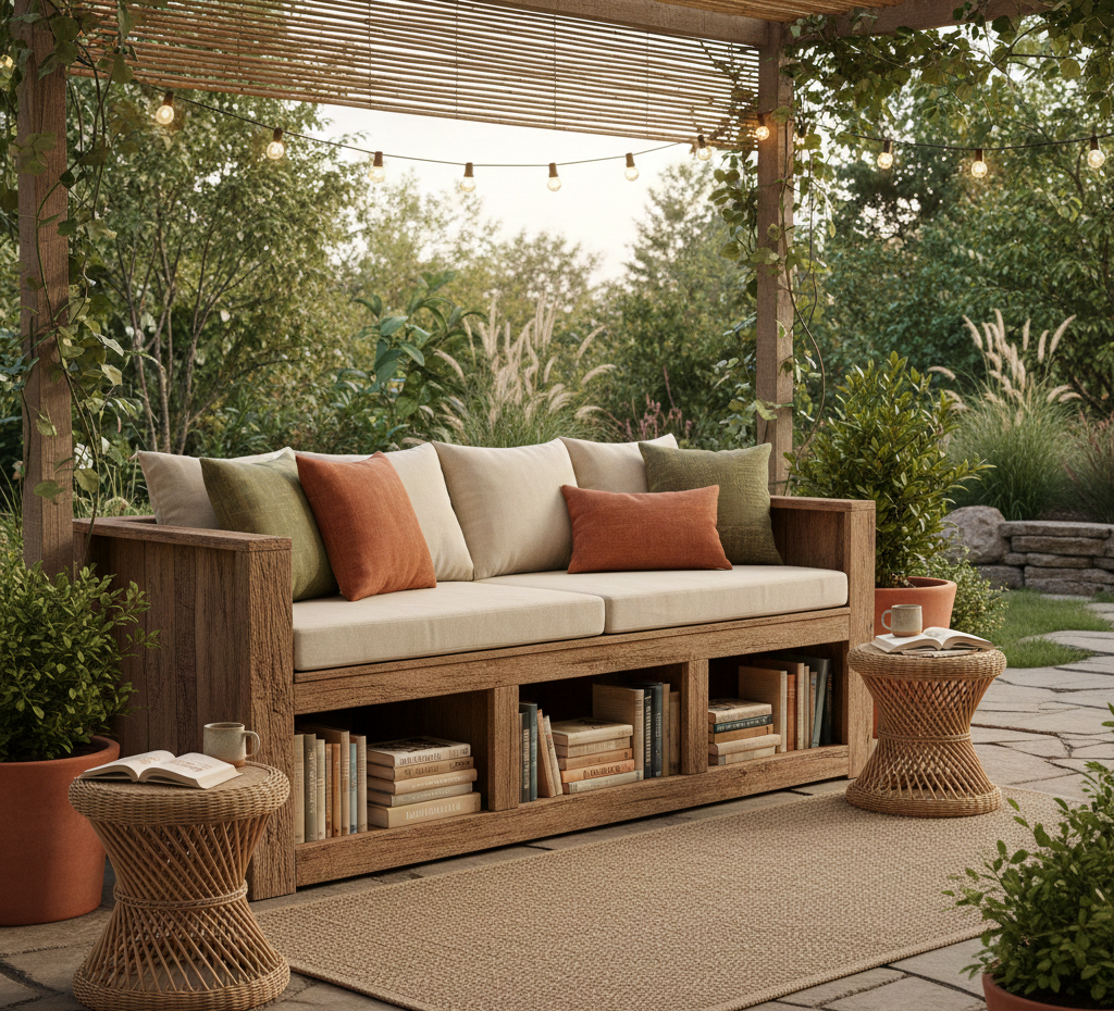 For a modern twist, opt for a monochrome palette with sleek outdoor furniture. Add a few chic pillows with book quotes to create an inviting reading space, one of the best patio ideas for book lovers.