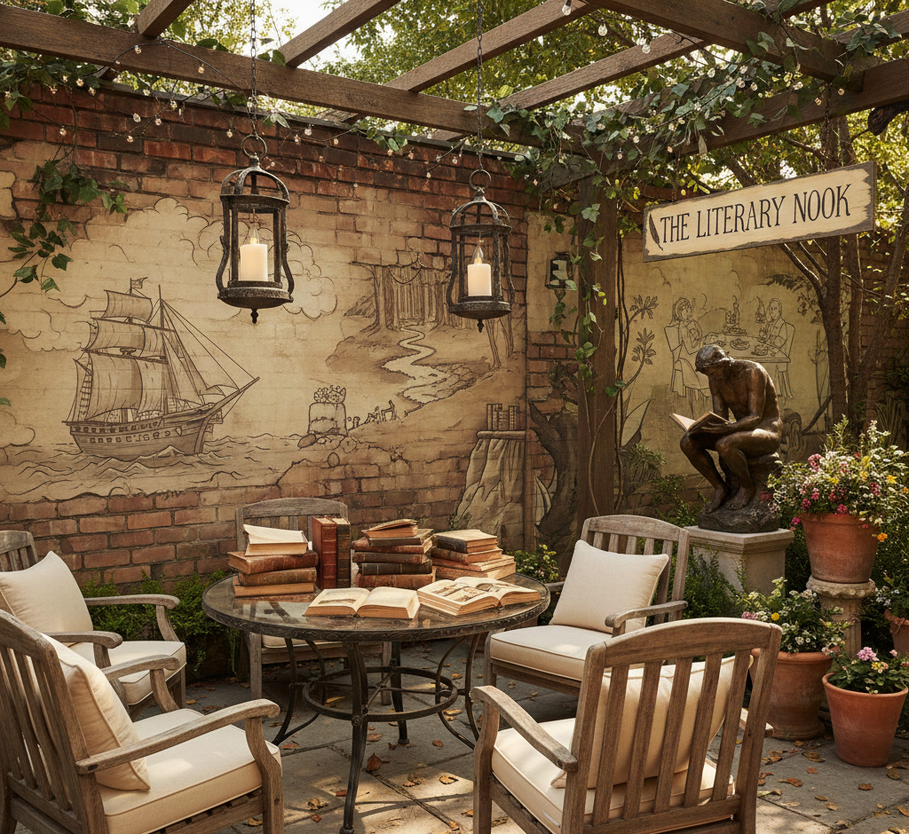 Incorporate artistic elements like sculptures or murals that reflect themes from your favorite literature. These patio ideas for book lovers create a visually stimulating environment, making it inspirational as you delve into new books.