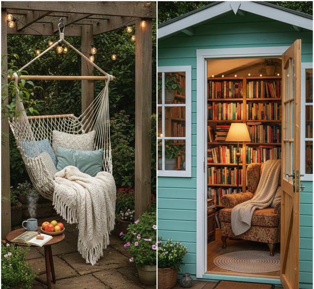 Imagine a charming mini-bungalow or a garden shed transformed into your personal library. These patio ideas for book lovers fill the space with shelves of books, comfy seating, and gentle lighting. You can paint it in lively colors to energize your reading sessions or keep it neutral for a tranquil experience.