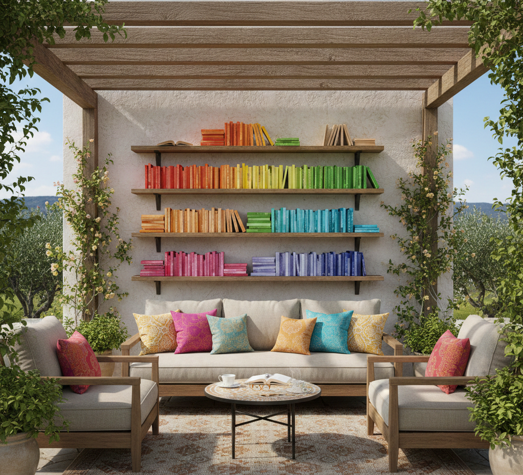 Utilize floating shelves on your patio walls to hold your favorite books. This not only saves space but also adds décor. Arrange the books by color or size for a visually pleasing arrangement.