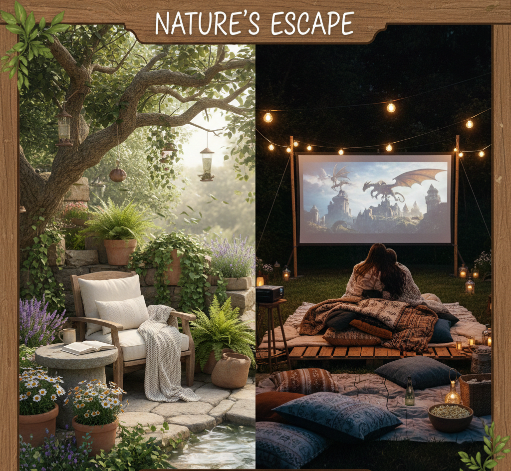 Looking for patio ideas for book lovers? Set up an outdoor projector for movie nights featuring adaptations of your favorite books. Create a cozy setup with blankets and pillows, allowing you to immerse yourself in the cinematic experience of beloved stories.