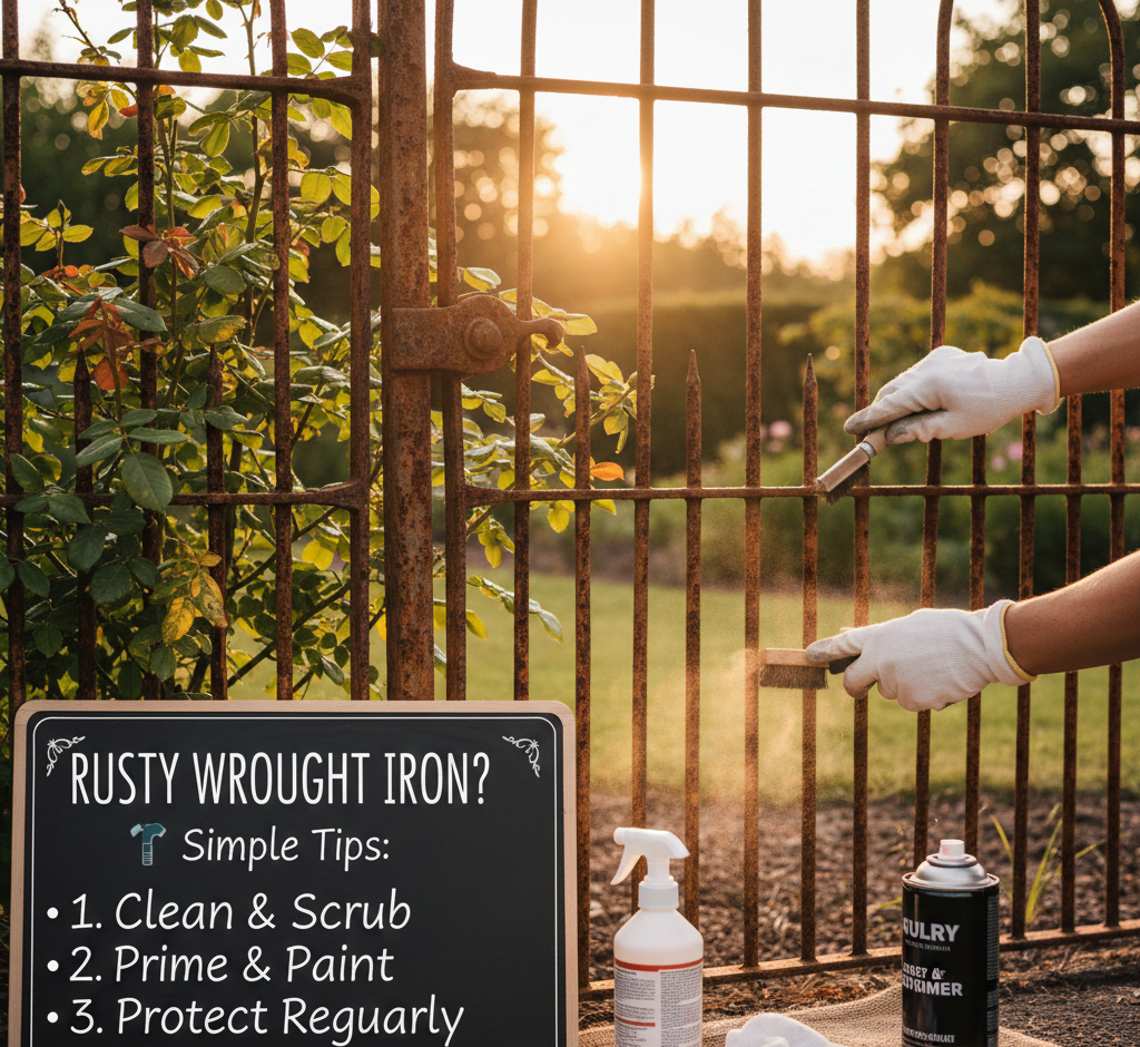 To keep your rusty wrought iron pieces looking their best, maintenance is key. Here are some simple tips: