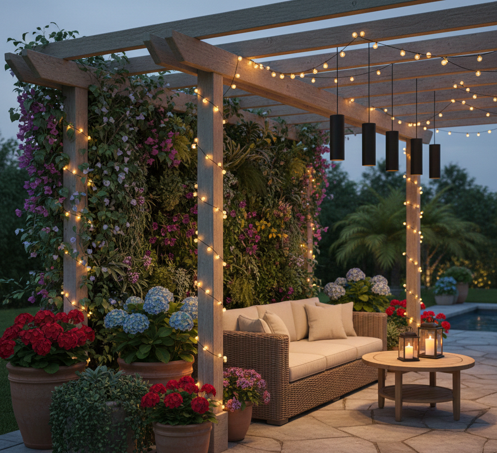 Lighting can transform your pergola from day to night. String lights, lanterns, or even solar-powered fairy lights create a warm ambiance. Consider hanging pendant lights for a more modern touch that also provides ample illumination for evening soirees.