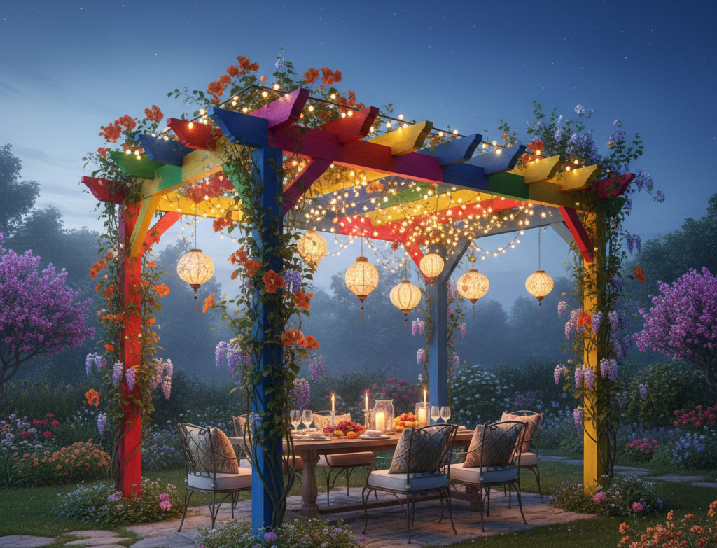 Why stick to neutrals? A colorful pergola can be a delightful surprise in your garden. Paint it in bold shades to match your personality—think fiery reds, serene blues, or earthy greens. This vibrant choice will elevate your space and ignite joy.