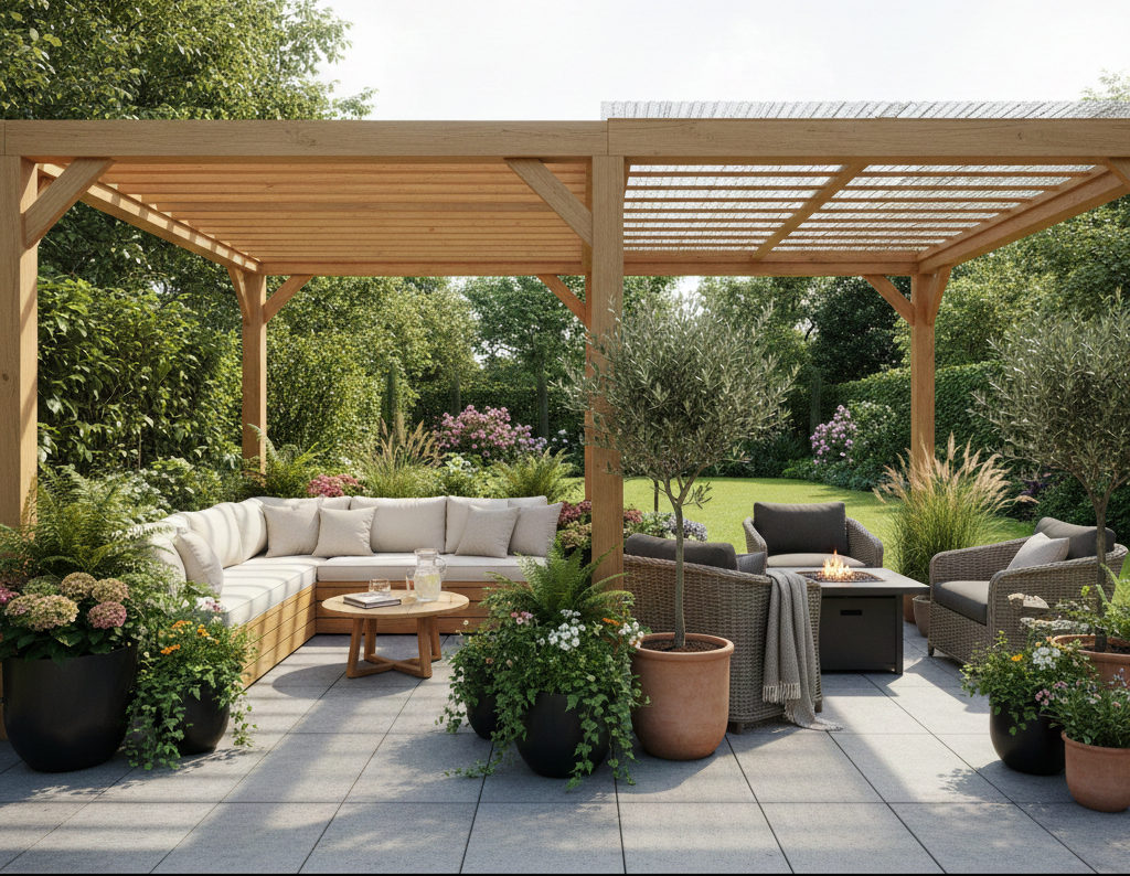 Imagine lounging under a starry sky with the gentle warmth of a fire pit nearby. A pergola paired with a built-in or portable fire pit transforms evenings into magical experiences. It’s the perfect gathering spot for friends and family during cooler nights.