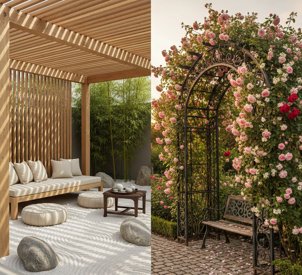 For a serene and peaceful garden, consider crafting a Zen garden with a pergola at its heart. Incorporate natural elements like rocks and sand, with bamboo and simple cushions for seating. This tranquility zone will become your favorite escape.
