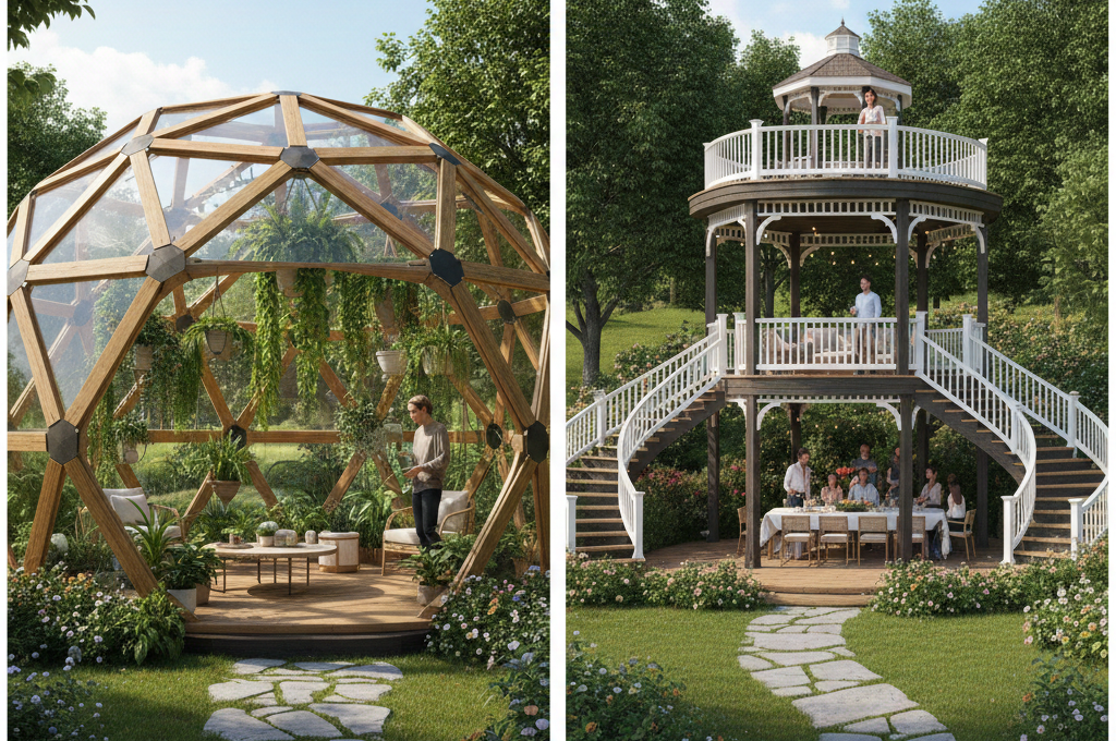 Step into the future with a geo-dome gazebo. Its unique structure not only stands out aesthetically but is also perfect for gardening, allowing for excellent light capture and air circulation.
