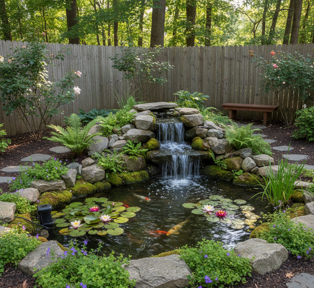 A garden pond can be the centerpiece of your outdoor space. Picture a large, serene pond filled with koi fish and surrounded by lush greenery. You can add water lilies, floating plants, and decorative stones to enhance its beauty. Ensure you incorporate a filtration system for clear water, and consider installing a small waterfall for added serenity.