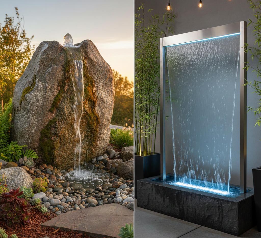 For a more natural look, consider a bubbling rock fountain. These features mimic natural springs, with water bubbling over a large stone. They are low-maintenance and can blend seamlessly into a rocky garden or a xeriscape design.