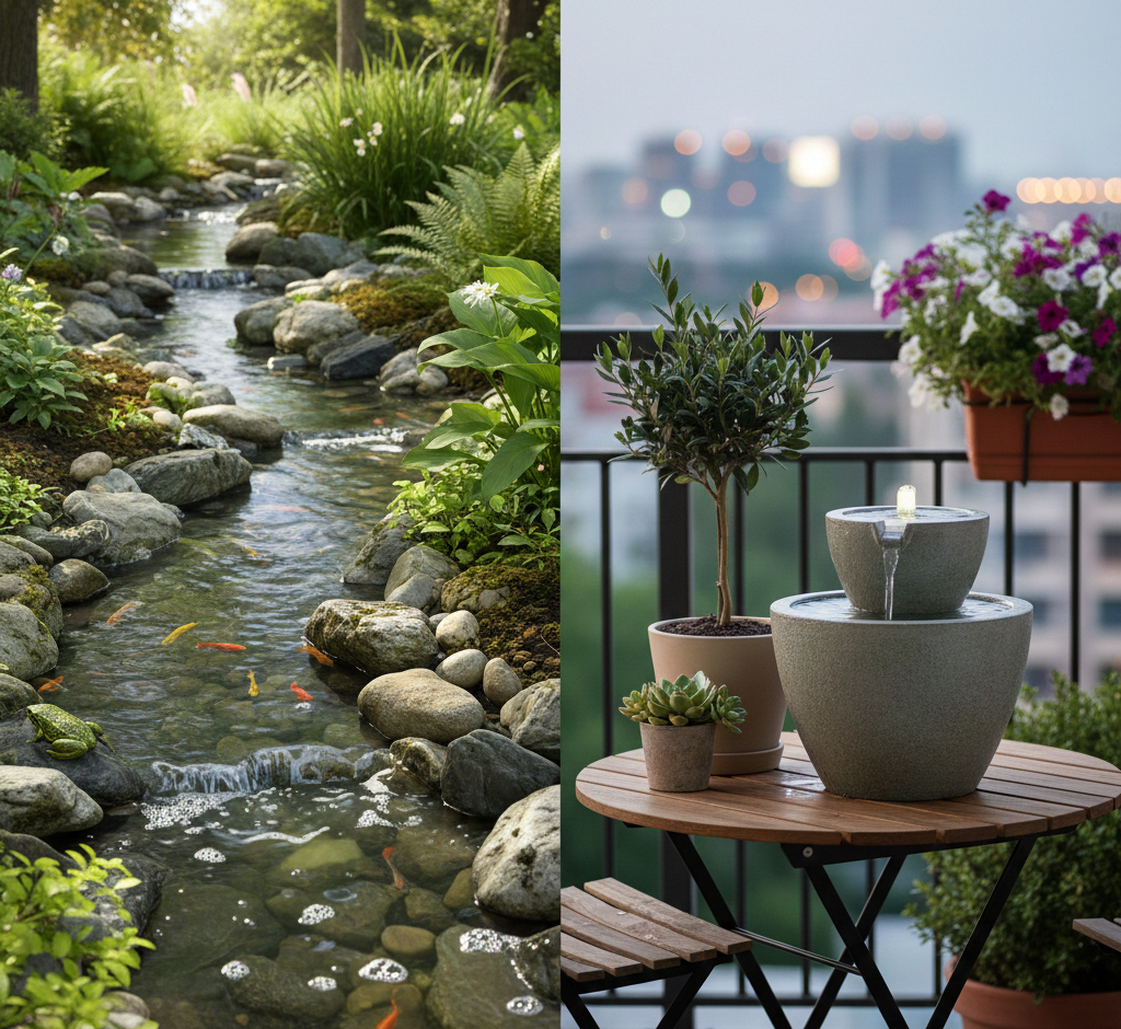 If space is limited, a small pond is an excellent option. Fill it with water lilies and decorative fish to enhance its appeal. Surround it with stones and plants for a natural look, and don’t forget to include a small pump to keep the water circulating.