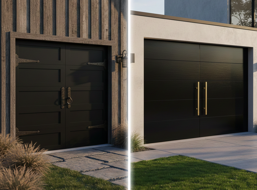 Black garage doors come in various styles, including sectional, carriage house, and traditional raised panel designs. Choose one that complements your home’s architectural style.