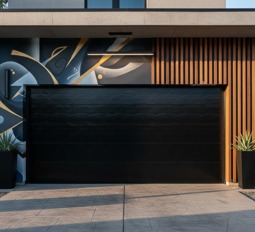Consider a garage door with unique panel designs or textures, such as ribbed, embossed, or even a carriage-house style. These details can make your black door a standout feature.