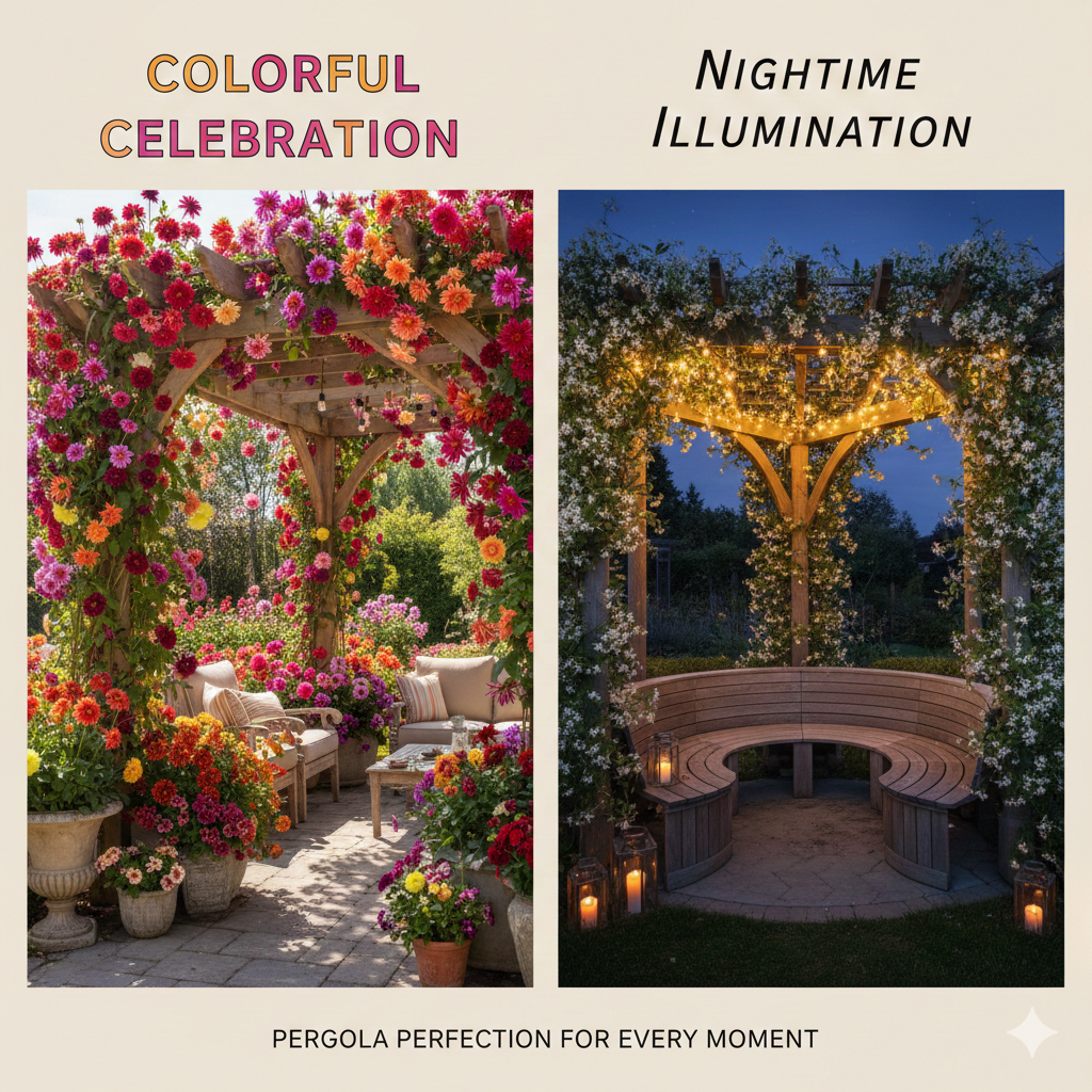 Regular pruning, watering, and checking for pests will keep both your pergola and plants in good condition. Seasonal maintenance will extend the life of your outdoor retreat.