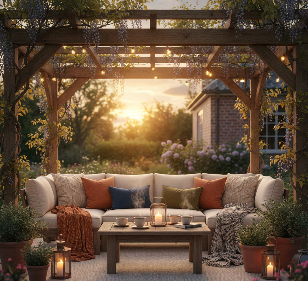 Consider these Pergola Ideas: Incorporate plush outdoor furniture beneath your pergola to create a cozy nook for relaxation. Adding cushions and blankets can make your space feel more inviting. Don’t forget a coffee table for that perfect evening cup of tea!