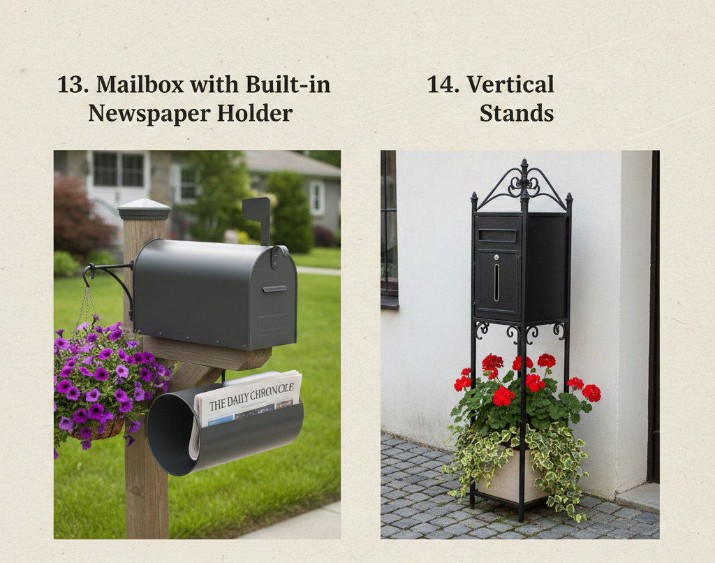 Keep your front yard clutter-free with a mailbox that features a built-in holder for newspapers. These practical designs ensure your personal space remains tidy and organized while still being stylish.