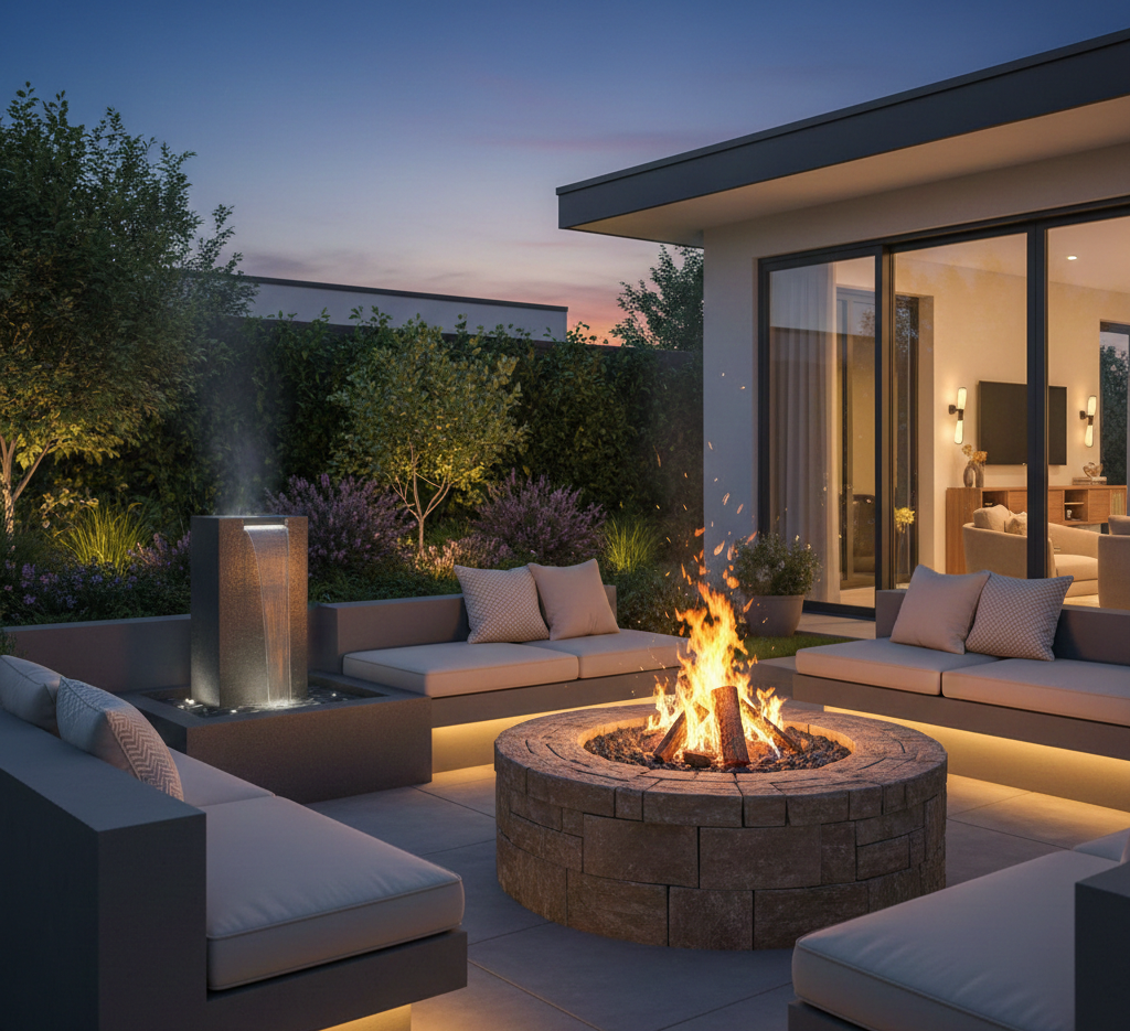 To create a serene and relaxing environment, consider adding a water feature near your fire pit. The gentle sound of running water complements the crackling fire, creating a peaceful ambiance perfect for unwinding after a long day.